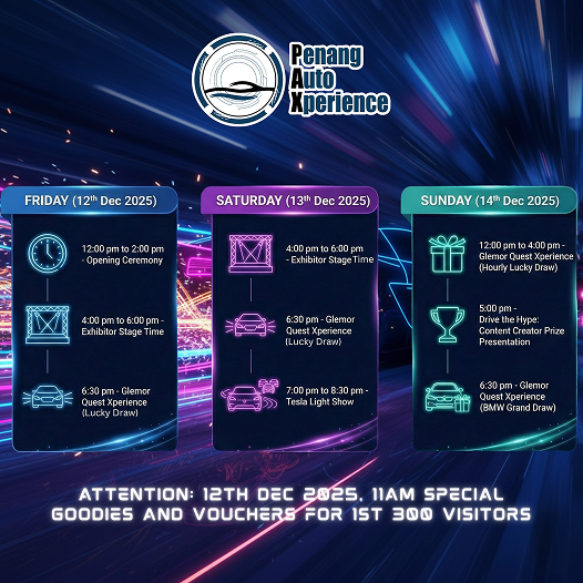 The Penang Auto Xperience 2025 is happening at Setia SPICE Arena from 12 – 14 December 2025, and it’s going to be the biggest indoor automotive lifestyle exhibition in the state!